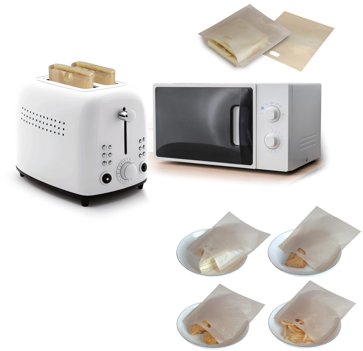 .可保持機器清潔 : 減少食物屑屑掉熱機器中,避免滋生細菌,縮短清潔時間 .食物裝入專用袋,放入機器中加熱,不直接接觸熱源,避免烤焦過熱的狀況,讓食物更加美味 .袋子兩面平滑不沾黏,易清洗 .可重複使用