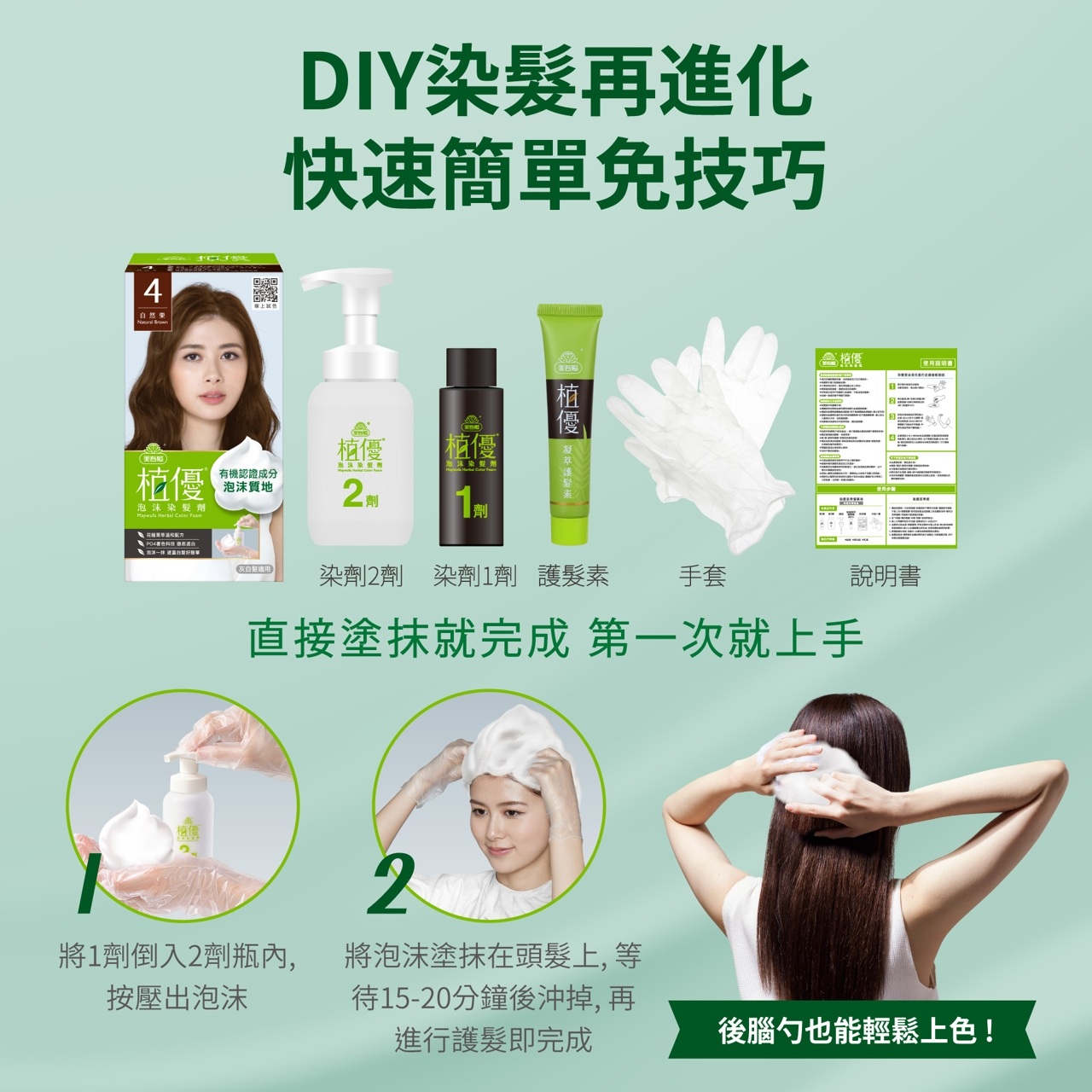 內容物:美吾髮 植優泡沫染髮劑- 4自然栗
