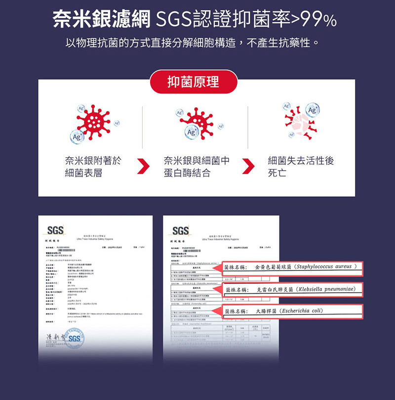 (1) 奈米銀空氣抑 菌濾網