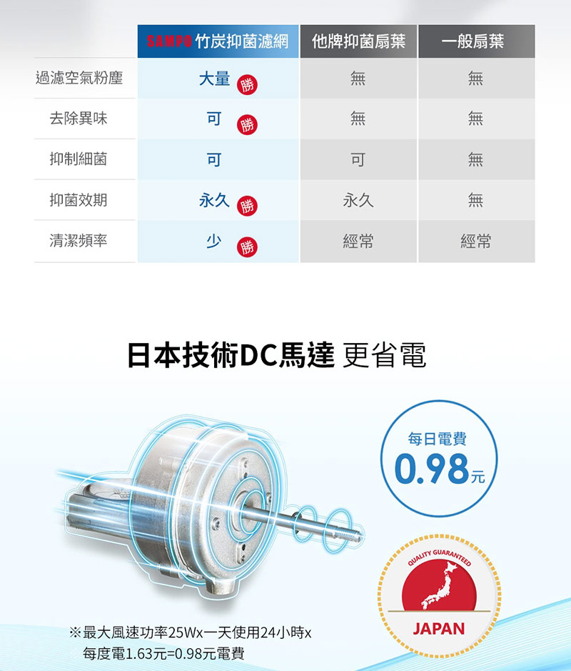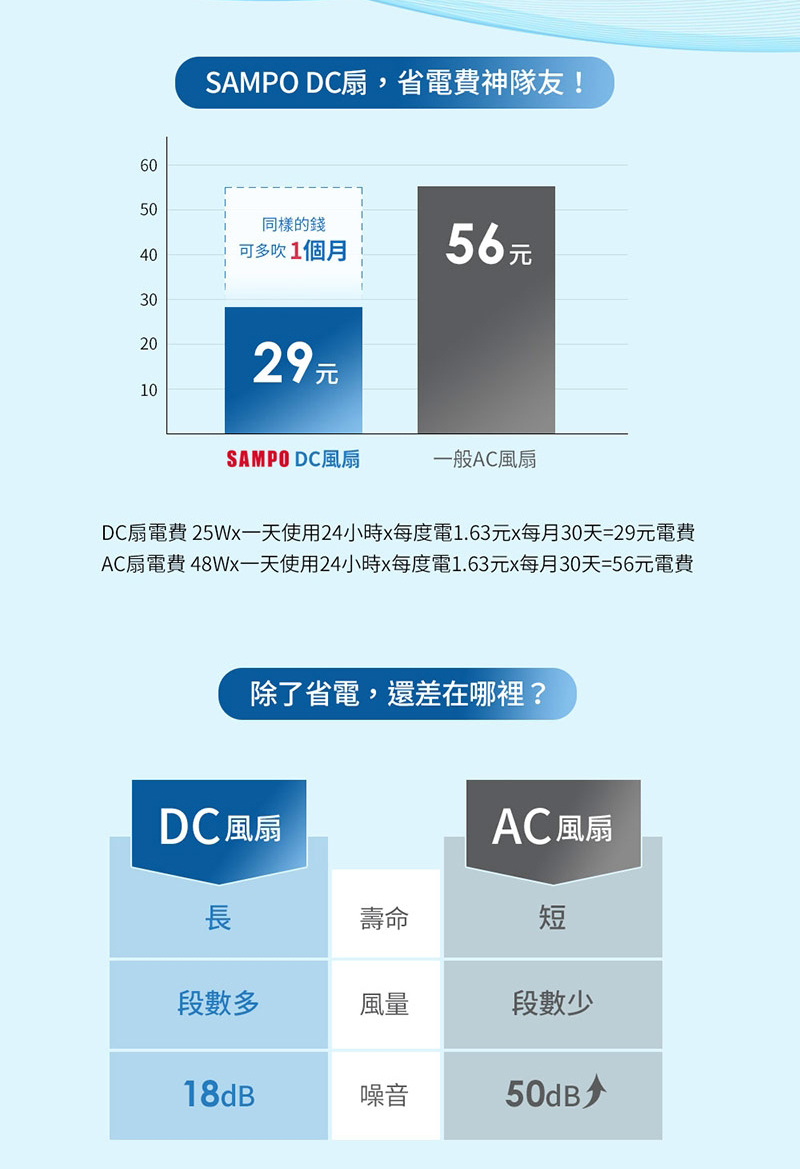 (4) 全包覆式DC直流馬達,18dB超靜音