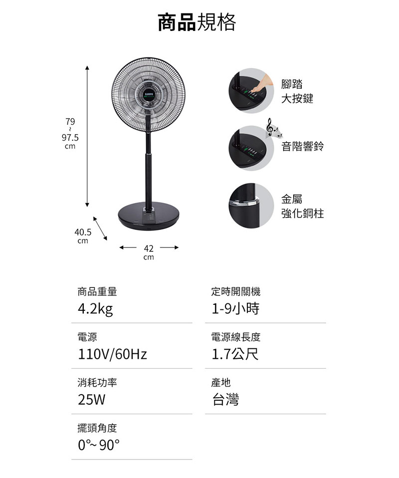 商品尺寸:420(寬) x 790~975(高) x 405(深) mm