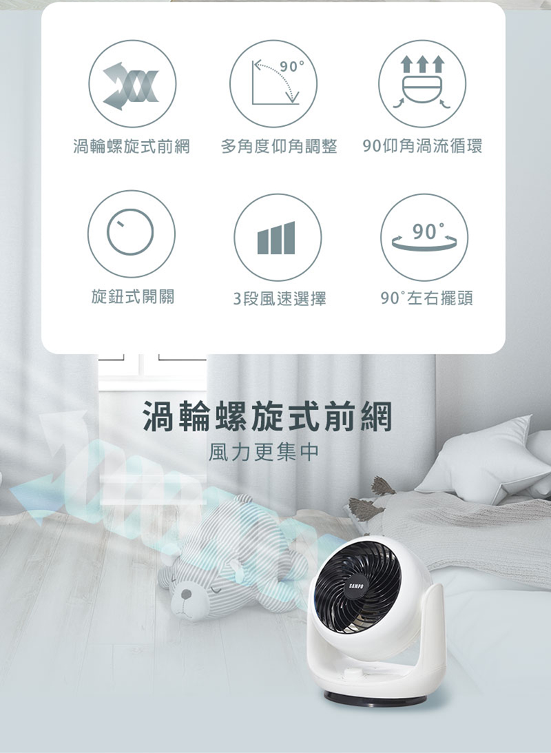 (4) 90°左右自動擺頭,廣角循環
