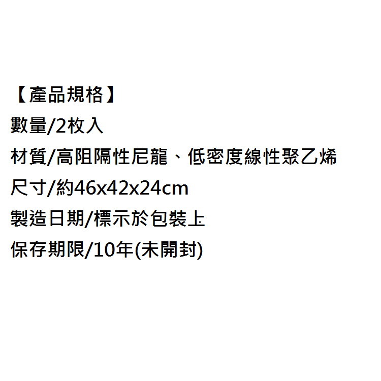 - 材質:高阻隔性尼龍複合、低密度線性聚乙烯