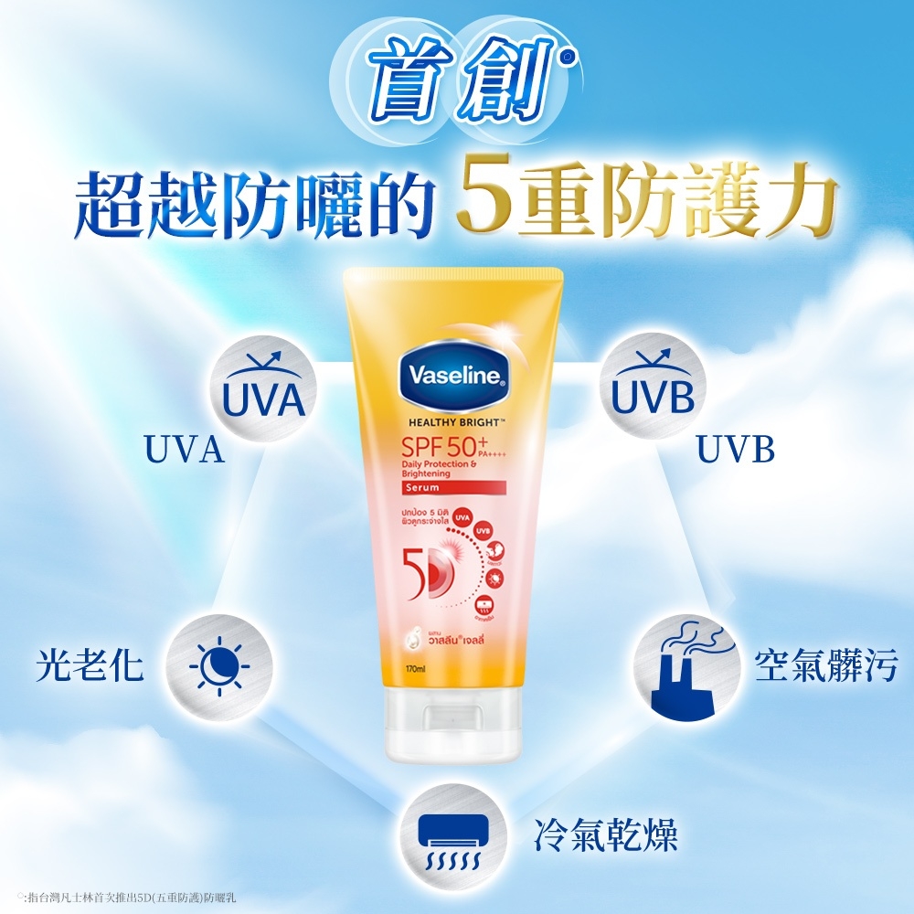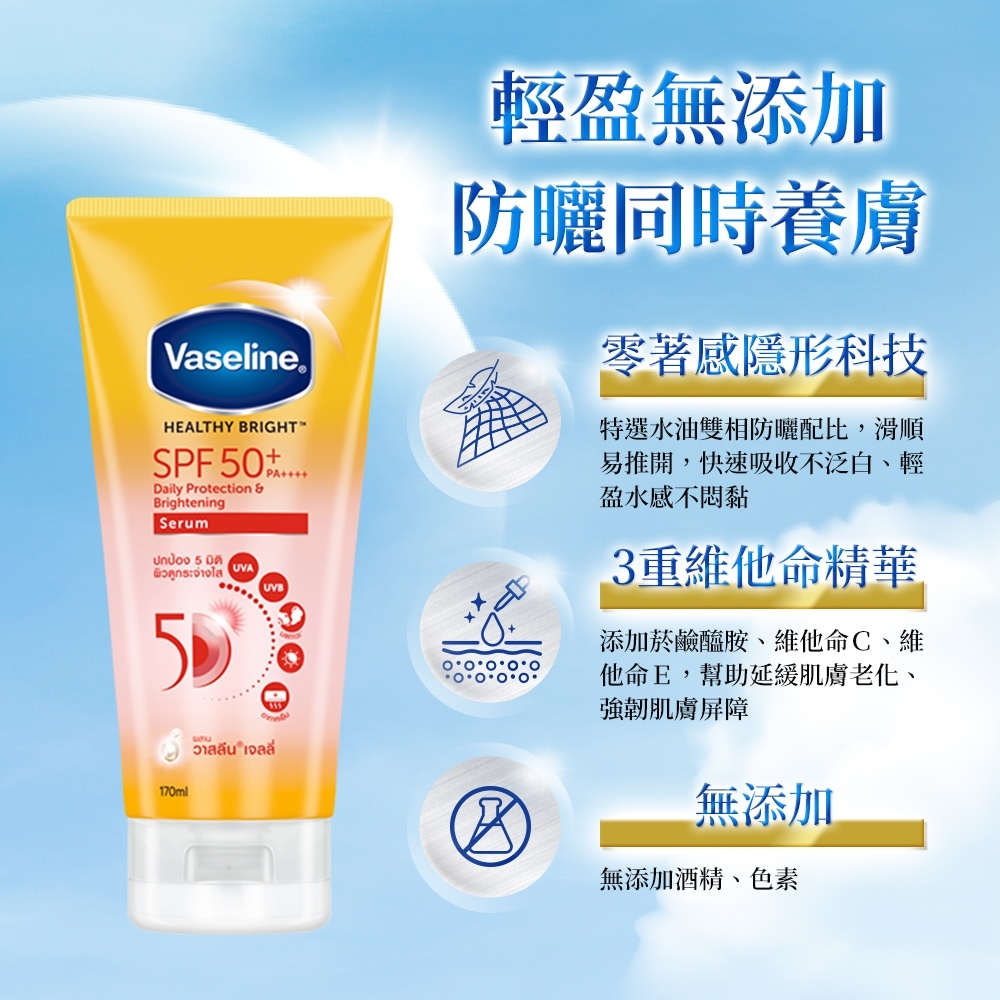 【Vaseline 凡士林】5D極護水感防曬乳 SPF50+PA++++(170ml)