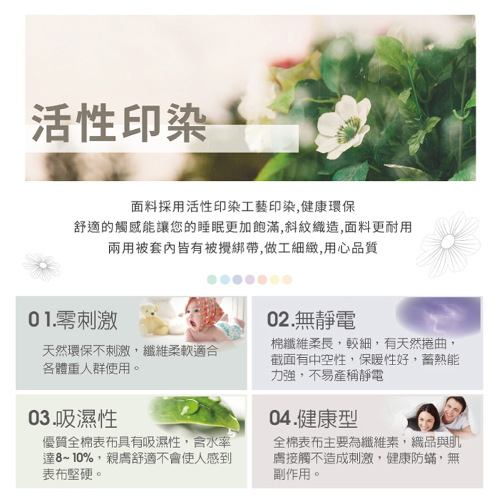 .100%精梳棉,環保印染材料 .透氣舒適, 經濟實惠, 佈置好搭配 .台灣製造品質保證