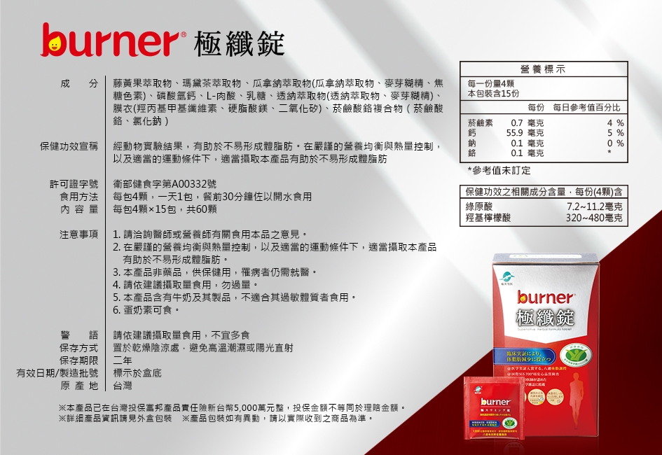 商品:burner倍熱 極纖錠60顆