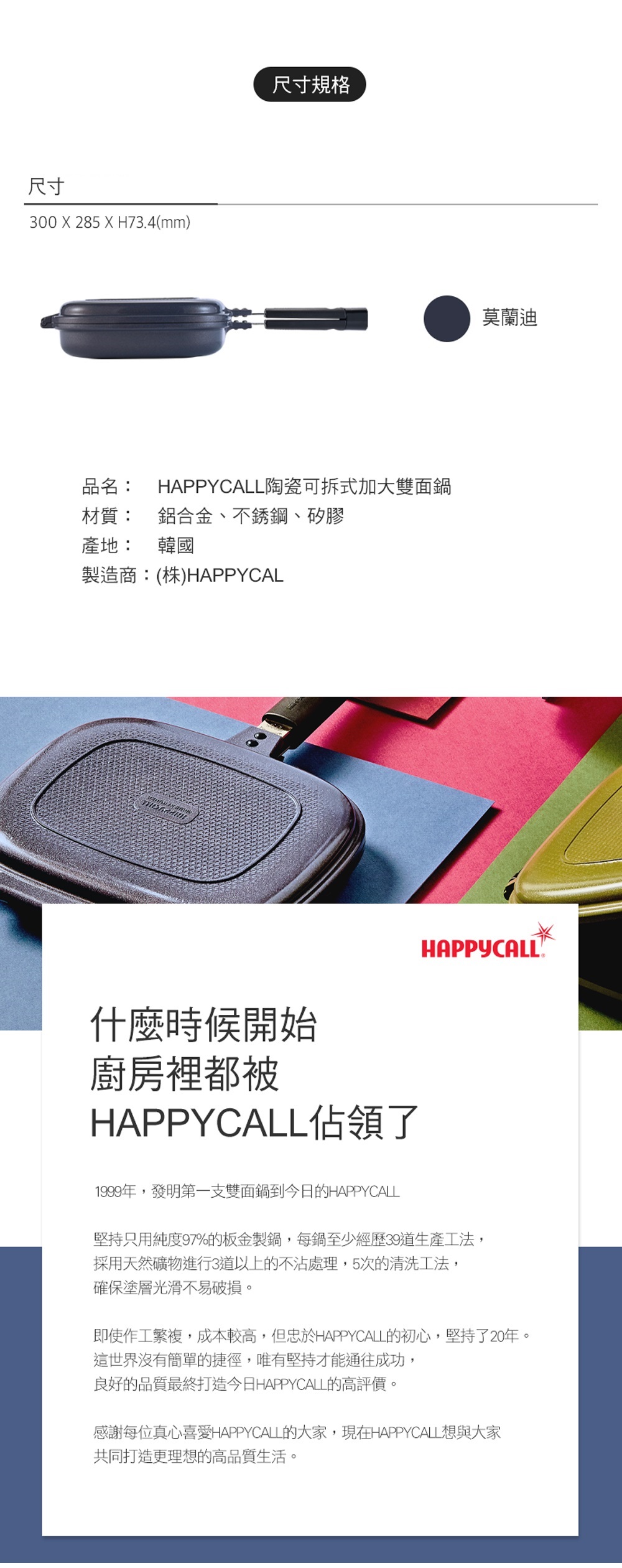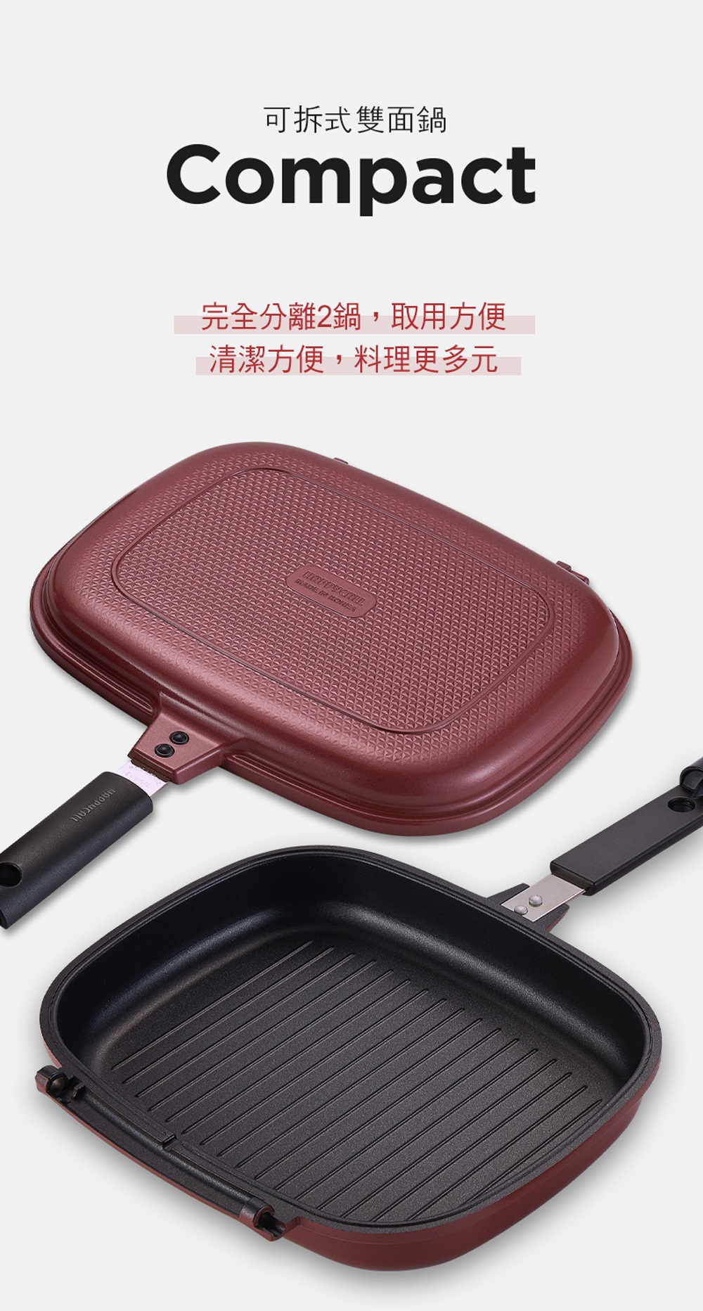 【商品名稱】【韓國HAPPYCALL】全新設計陶瓷熱循環可拆式雙面鍋(加大雙面鍋-紅)
