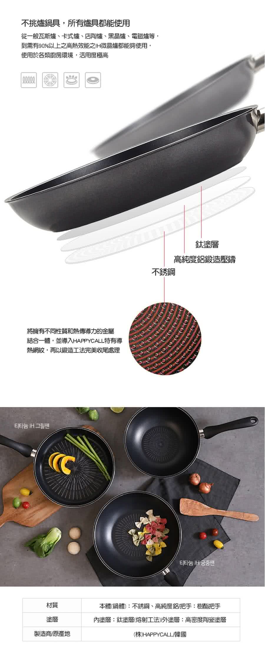 韓國 HAPPYCALL】鈦電漿IH耐蝕不沾平底鍋(24cm)