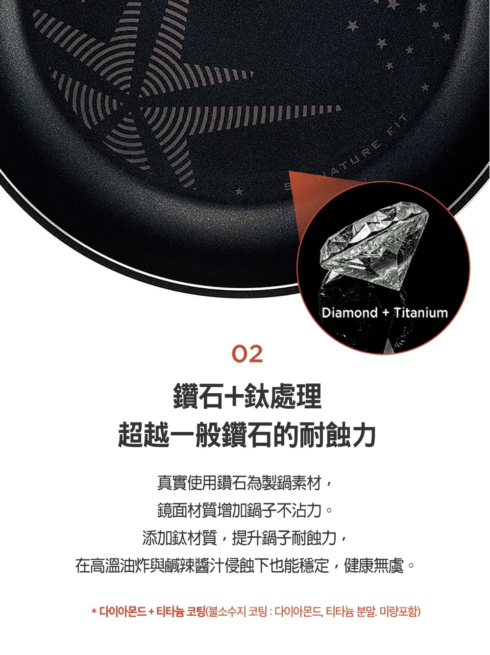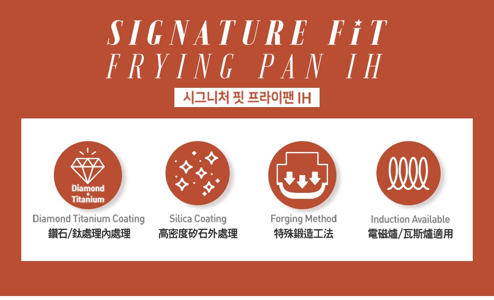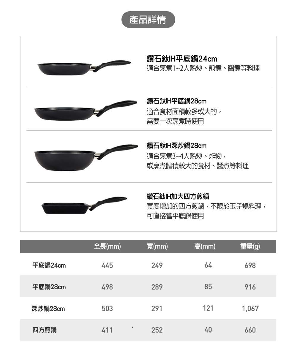 ★鈦耐蝕穩定度高 健康安全無毒 ★鑽石耐磨力強 不沾易潔 ★不挑爐具 瓦斯爐/電磁爐都OK