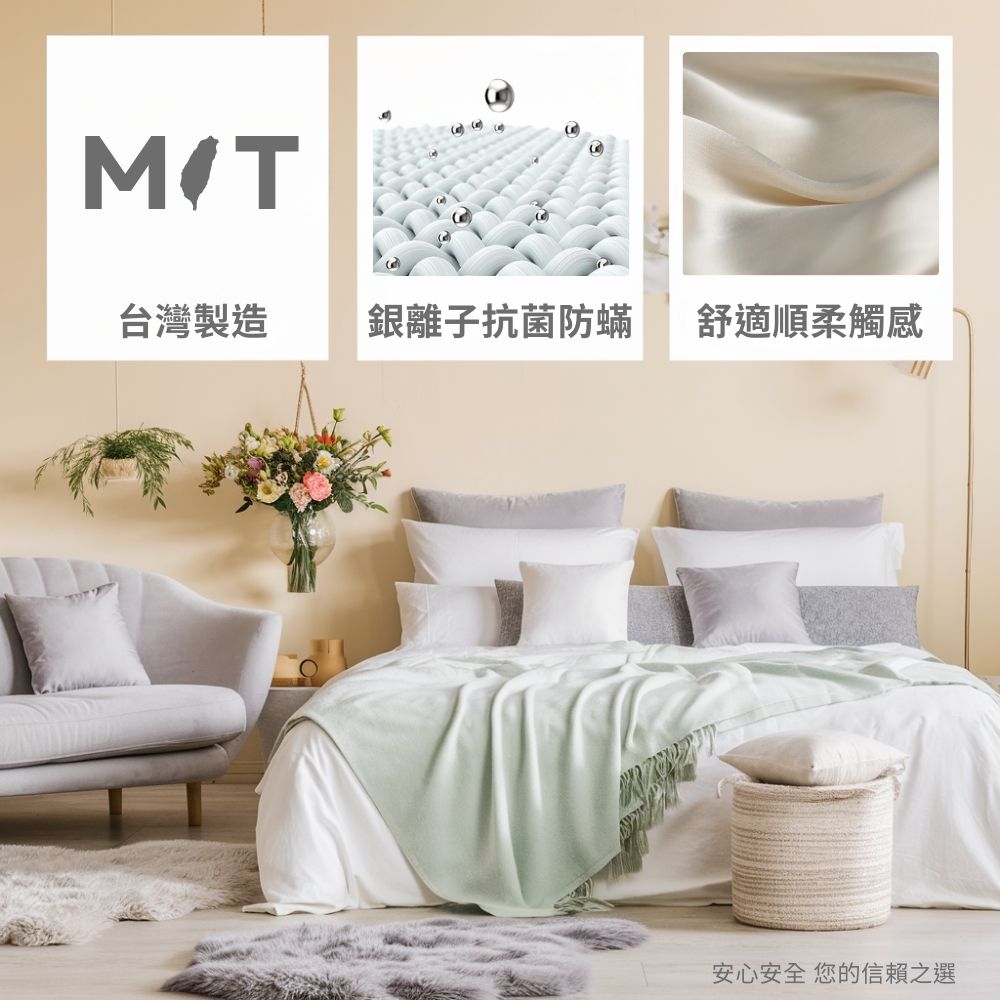 護理級銀離子,深層防蹣抗菌 舒柔棉質感,觸感柔軟細膩 優化睡眠環境,夜夜安穩無擾
