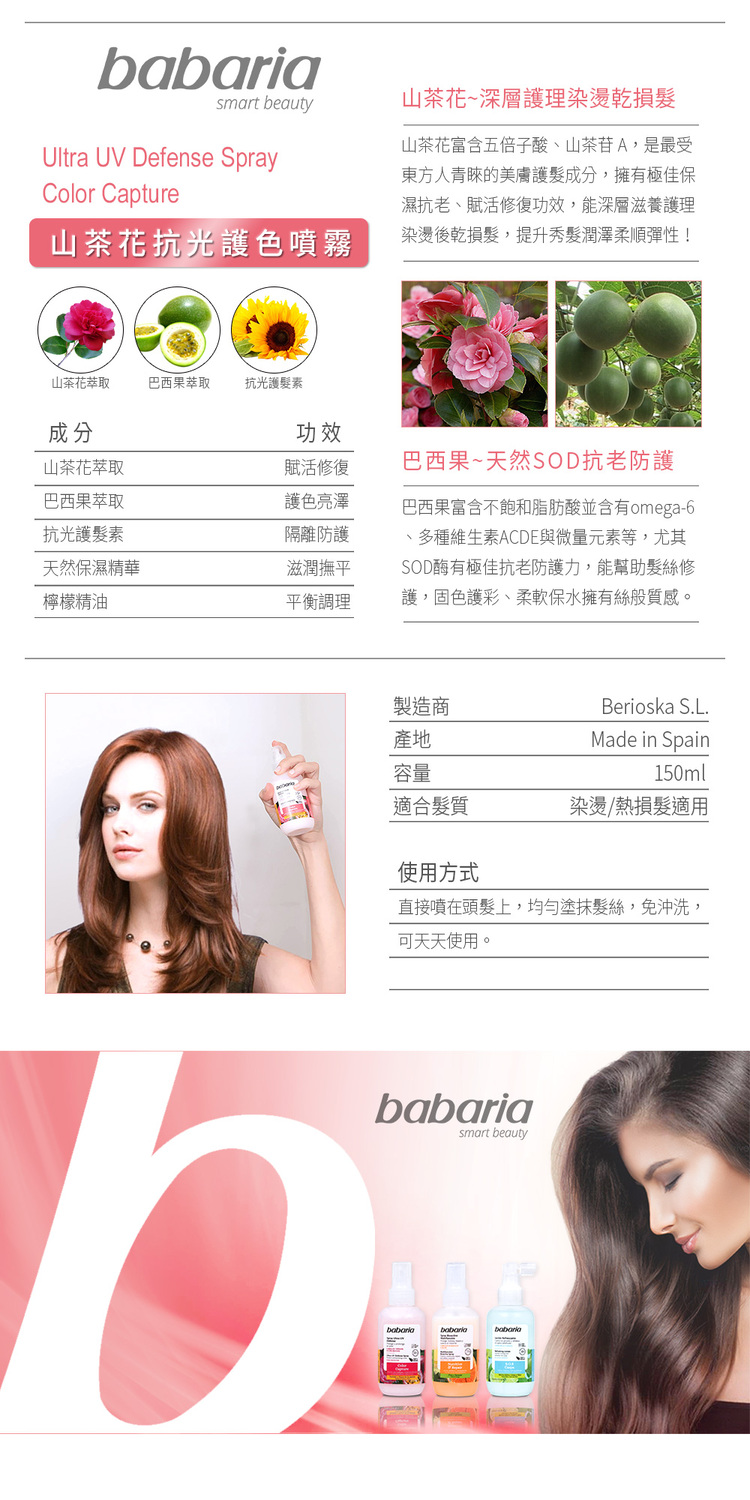 內容物:BABARIA 山茶花免沖洗抗光護色噴霧