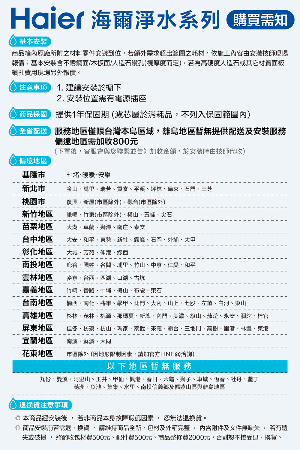 →請優先確認安裝環境,也可搜尋官方LINE@haierpro詢問,避免技師到場無法安裝產生空趟費600元。