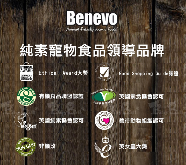 【Benevo 倍樂福】英國素食認證飼料是全方位均衡營養的寵物主食,只使用真正對環境友善的成分,不含小麥、人工色素、人工香料和防腐劑,不使用肉類、肉類副產品或基改成分,以人道、永續和友愛動物的方式讓寵物獲得牠們所有必需的營養。